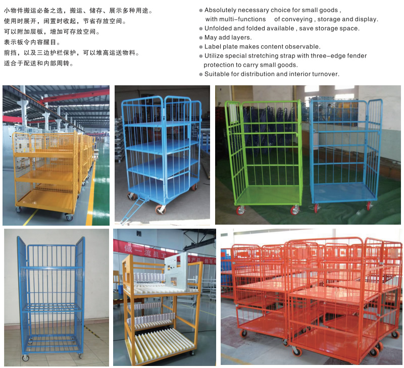物流臺車又叫載貨臺車或籠車,周轉車,是一種安裝有四只腳輪的運送與儲存物料的單元移動集裝設備。常用于大型超市的物流配送或工廠工序間的物流周轉。物流臺車是物流業,生產業搬運利器,可使生產線空間盡其運作。